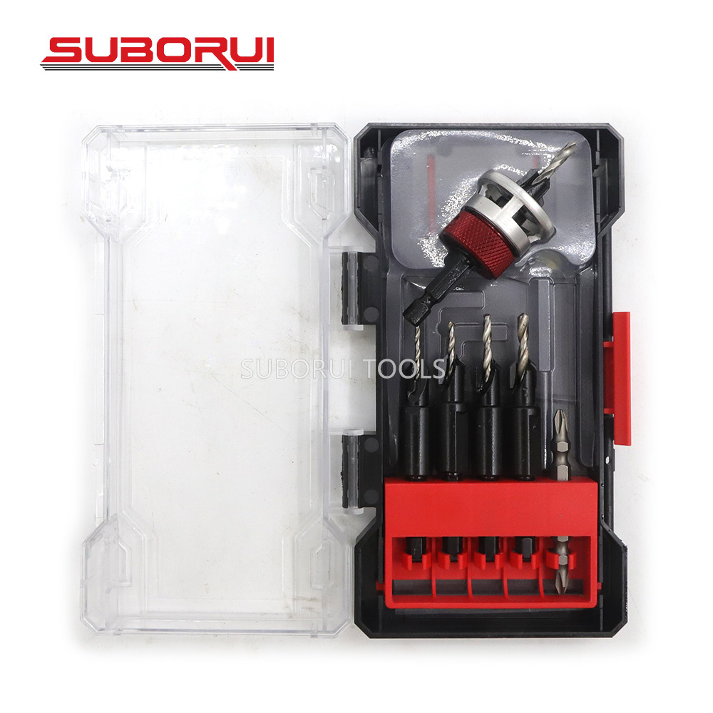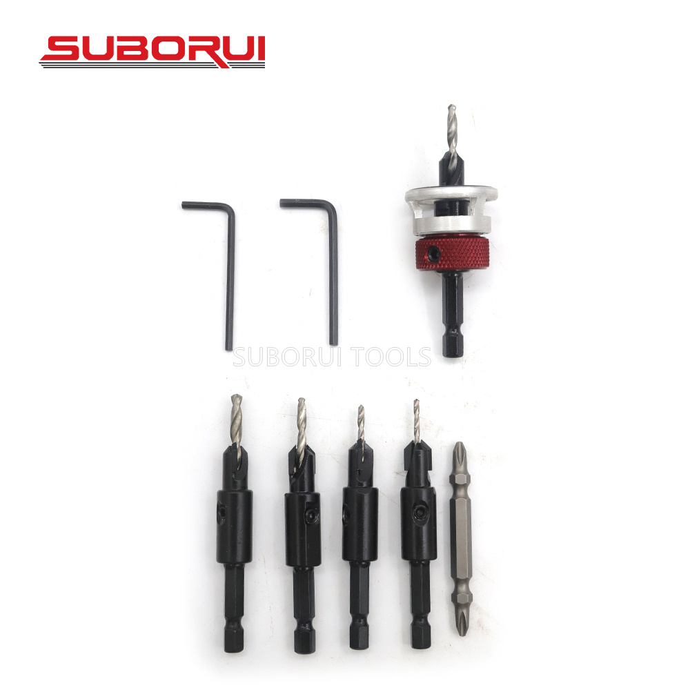 7. Both the pilot drill and countersink depth can be adjusted with the included wrench, ensuring precise drilling.