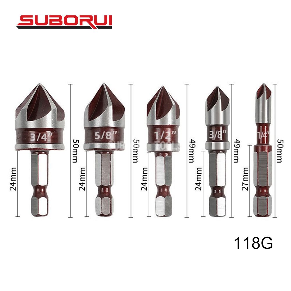 5 SIZES: Countersink bit set include 1/4in, 3/8in, 1/2in, 5/8in, 3/4in